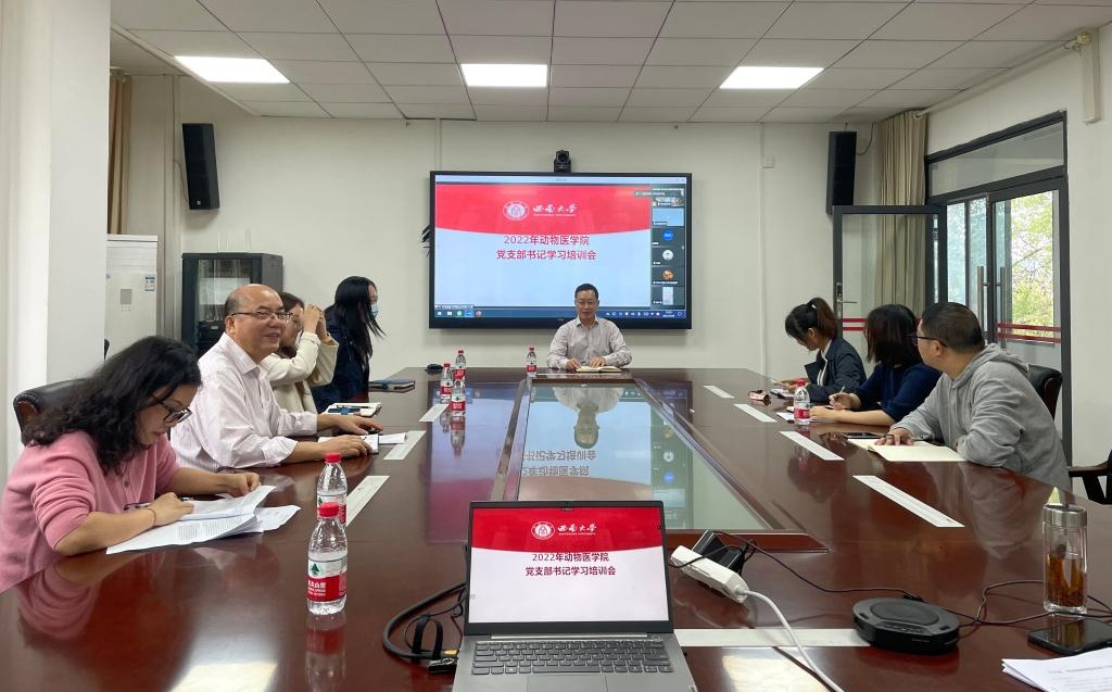 在荣昌校区院办2楼会议室召开2022年“ 凝心聚力谋发展 奋发有为迎盛会”党支部书记培训会,北碚校区通过腾讯会议一同参与此次会议。学院党委书记黄昌建,学院党委副书记、纪委书记黄庆洲,学院党委委员、各党支部书记参加会议。