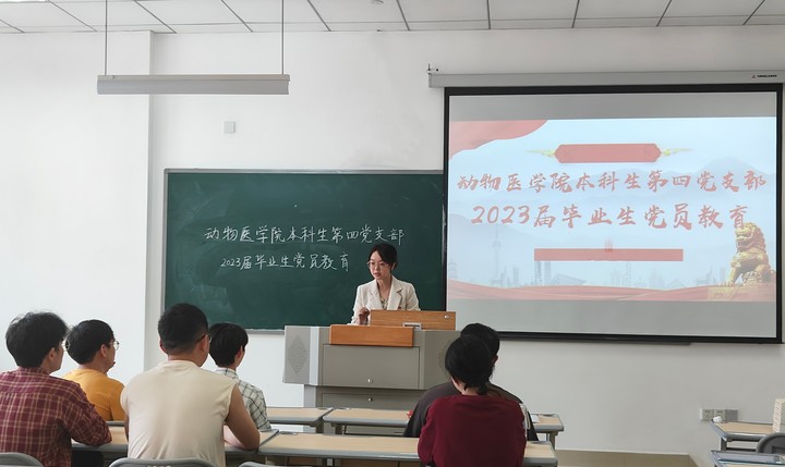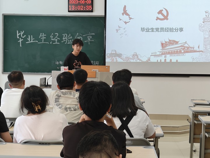 活动上半部分,组织毕业生党员重温入党誓词,支部书记张老师为毕业生党员同志进行主题教育,对他们提出如下期许:党员同志要坚定理想信念,牢记初心使命,做知农、懂农、爱农的新时代动物医学领域人才。下半部分,四位毕业生党员主动分享自己的考研和就业经验,其中:毕业生党员刘于畅就自身保研经历,分享了自己的学习经验、学习方法、保研流程与时间规划;王天艺详细讲述了她入职双胞胎集团的亲身经历,以及找工作的注意事项。毕业生党员们细致全面的分享,让中兽和动药专业的学弟学妹对考研和就业有了更为深入的了解。