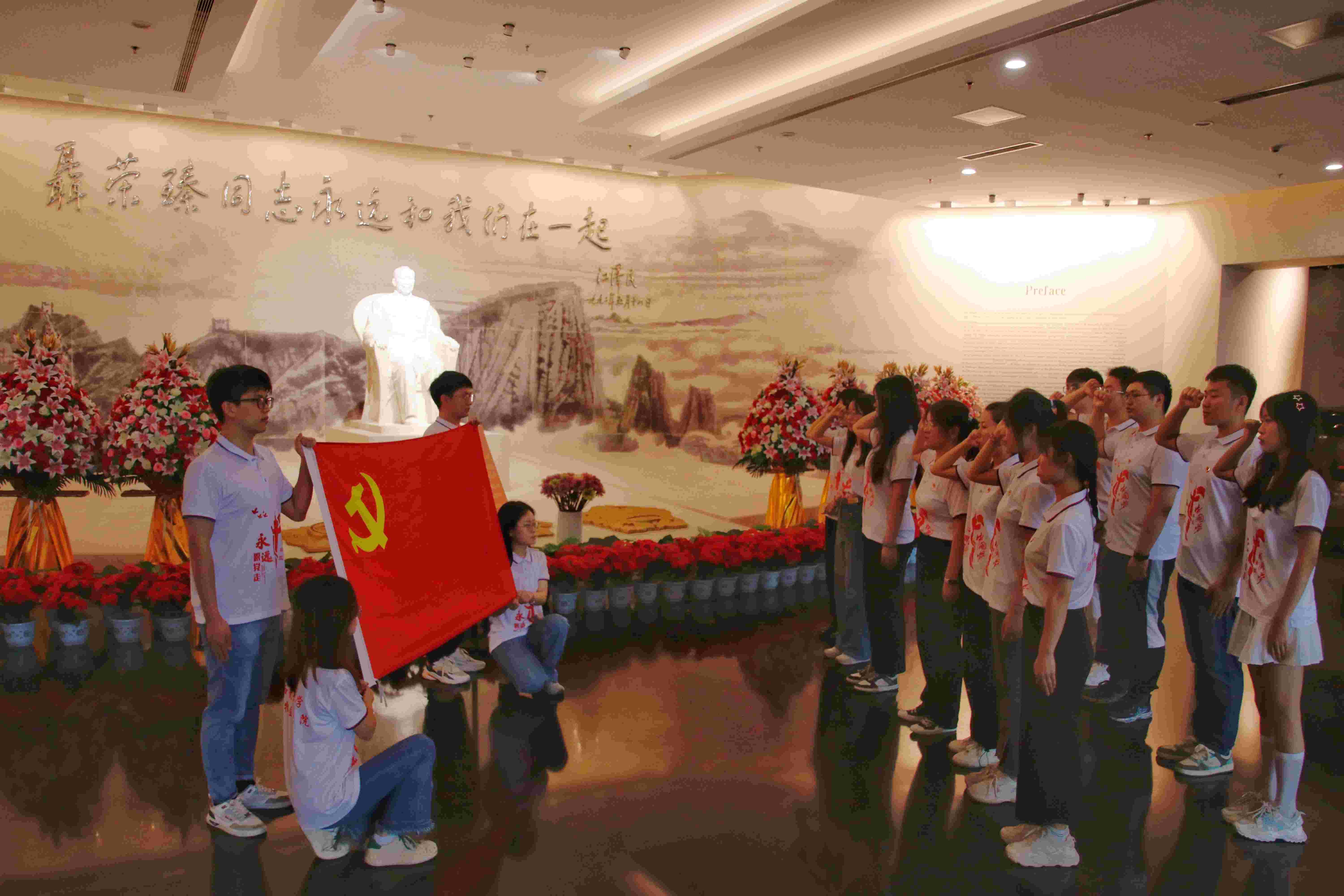 在聂荣臻元帅陈列馆中,在讲解员的解说中,一件件历史文物、一张张历史照片向大家诉说着聂荣臻元帅为国家、为民族出生入死的一生,深刻感悟革命先辈们的峥嵘岁月。最后,在聂荣臻元帅雕像前,全体党员肃穆站立,面向鲜红的党旗庄严地宣誓,重温入党誓词,以铿锵有力的宣誓表达守初心、担使命的坚定决心。党员同志们纷纷表示,要努力传承老一辈无产阶级革命家的革命精神,结合实际工作,做到勤于学习、善于思考、勇于实践,赓续传统,把学习教育成效转化为支部党员同志积极工作的动力,进一步提升专业技术能力和水平。