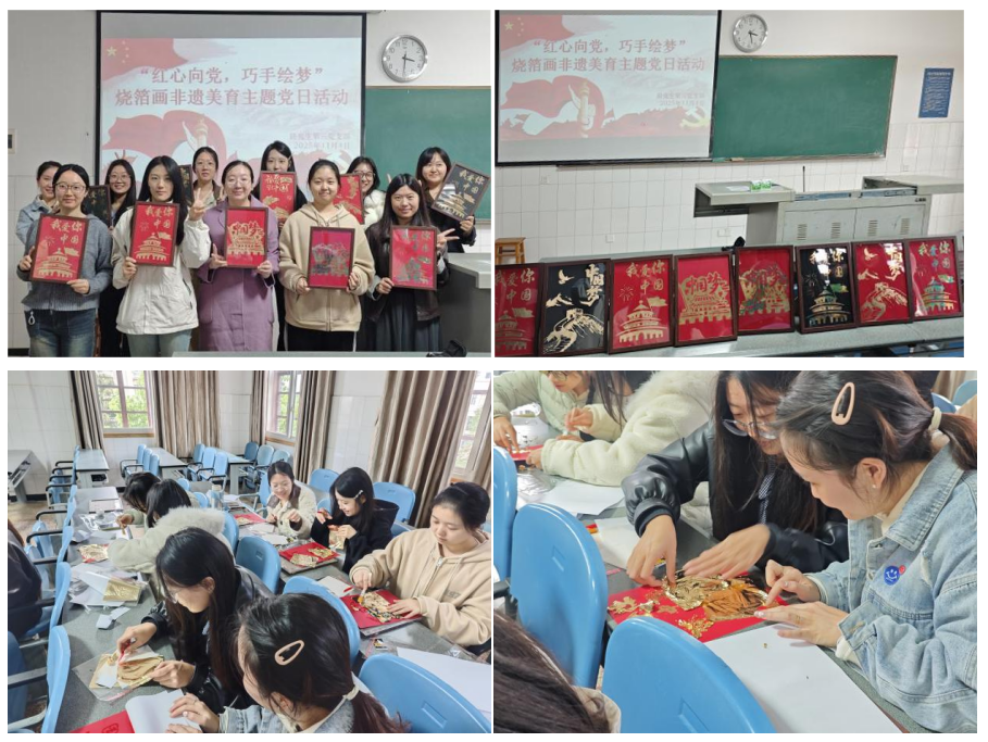研究生第三党支部精心策划并成功举办了一场别开生面的“红心向党,巧手绘梦”烧箔画非遗美育主题党日活动。此次活动不仅是一次艺术创作实践,更是一场生动的党性教育与文化传承之旅。