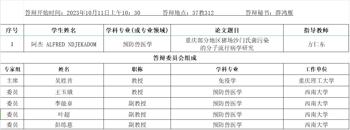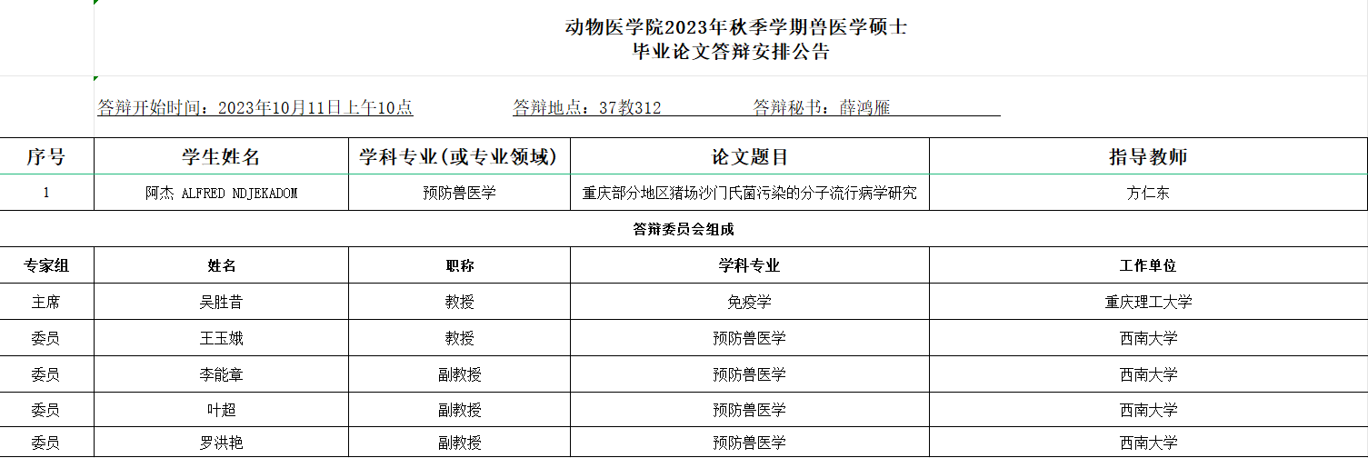 HO5HO 2023年秋季学期兽医学硕士毕业论文答辩安排公告