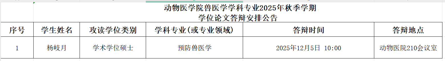 HO5HO 兽医学学科专业2025年秋季学期学位论文答辩安排公告