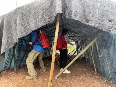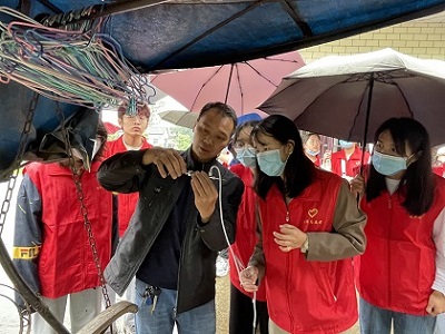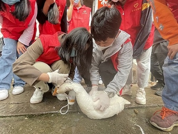 参与实践活动,弘扬劳动精神。在学院黄书记和实践指导老师的带领下,同学们来到了重庆市荣昌区直升镇。同学们为农民养殖户清理杂草,消毒圈舍,给鸡、鹅注射疫苗。在活动过程中,天公不作美,下起了蒙蒙细雨,但这丝毫不影响同学们的积极性,全都忘我的投入到活动中,体现了HO5HO