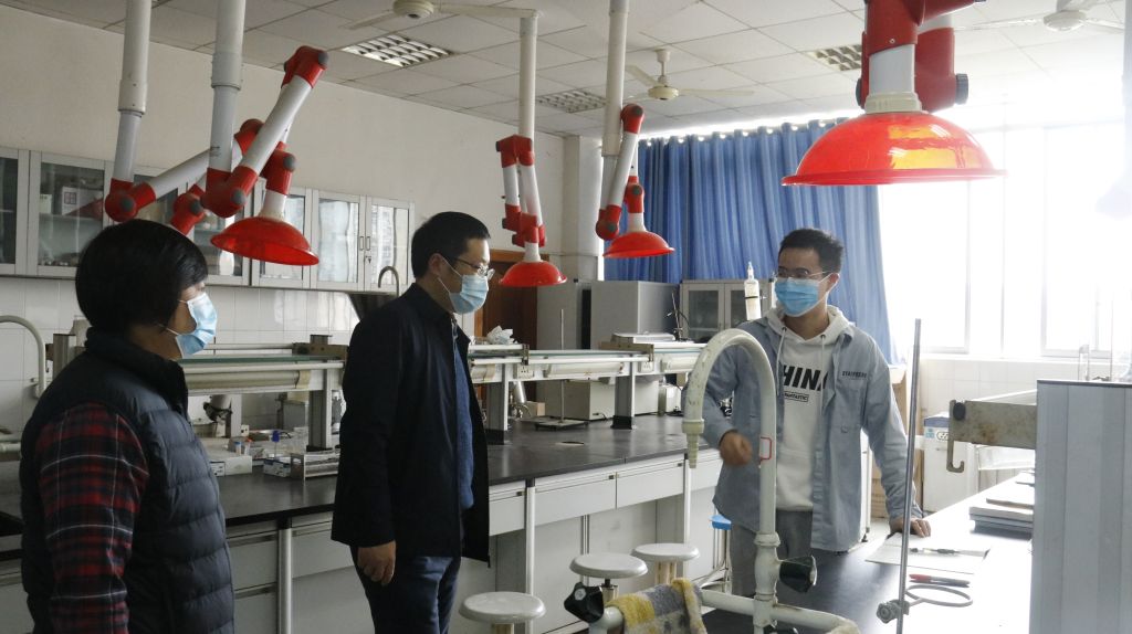 第三教学楼,以六楼为起始,依楼层顺序巡视到一楼,共进入19间实验室进行视察。视察工作中黄书记对进行实验的研究生和本科生同学认真求学的态度表示肯定,并提醒他们要注意实验安全,时刻都要高度重视自身安全。