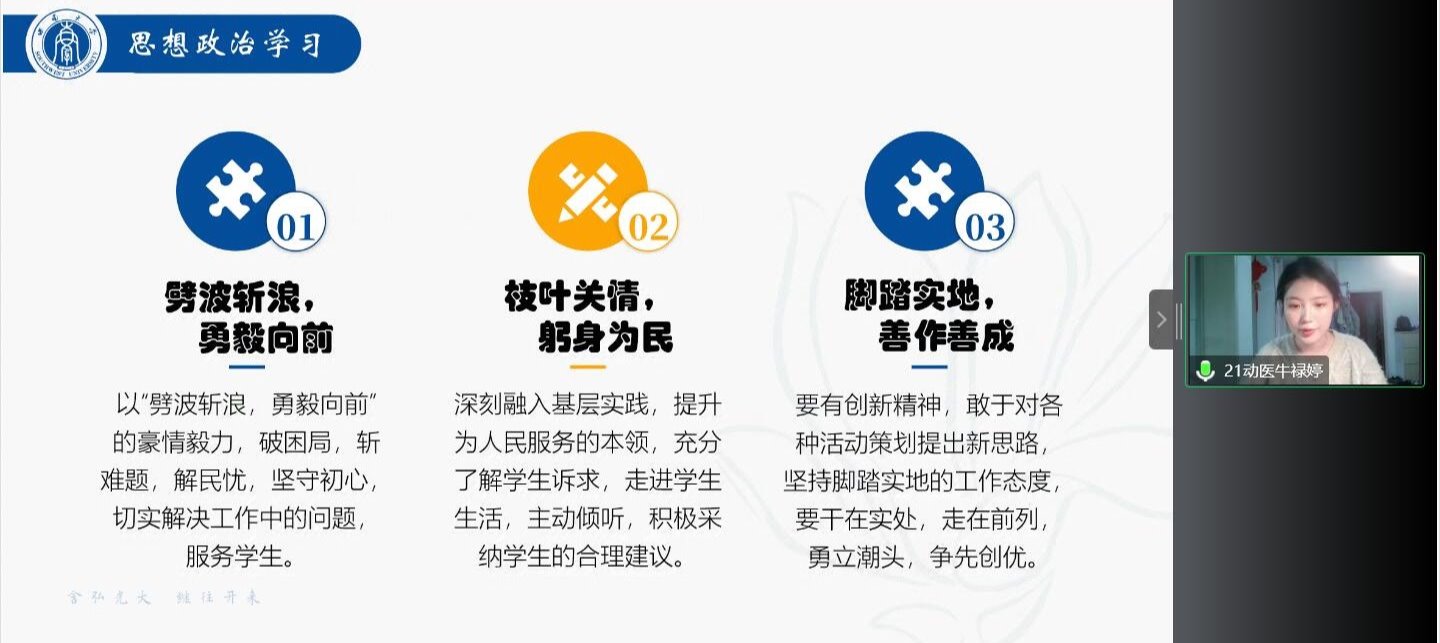 会议进一步督促学院团委学生会全体成员理清思路,自查自检,在工作中不断学习,树立大局意识、团结意识、协作意识,继续秉承“踔厉奋发、笃行不怠”的理念,推动学院团委学生会开创新局面,迈上新高度,共筑新辉煌。