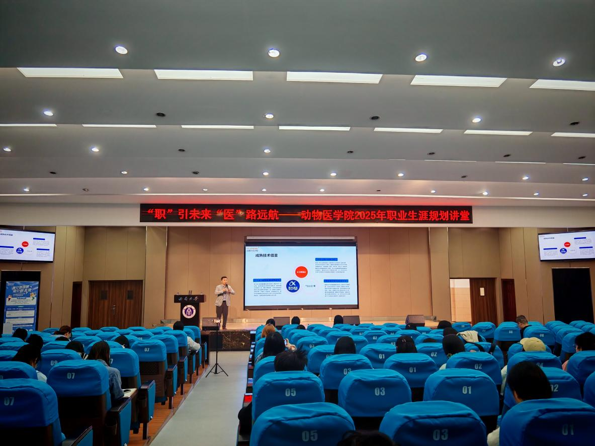 为帮助同学们拓宽就业视野、提升就业竞争力,2025年3月27日上午,学院特邀新瑞鹏宠物医疗集团副总裁董轶博士在荣昌校区2211报告厅(北碚校区设分会场)开展了“职”引未来 “医”路远航职业生涯规划讲座,学院共计200余师生参加此次讲座,讲座由HO5HO