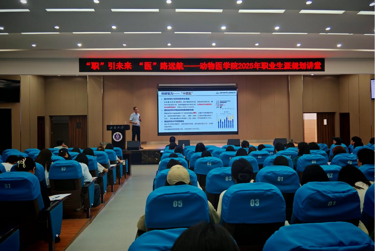 在荣昌校区2211报告厅成功举办“职”引未来 “医”路远航”讲堂。本次活动特邀上海兽医研究所科研管理处处长姜一峰博士担任主讲嘉宾,学院两百余名师生积极参与,讲座由HO5HO