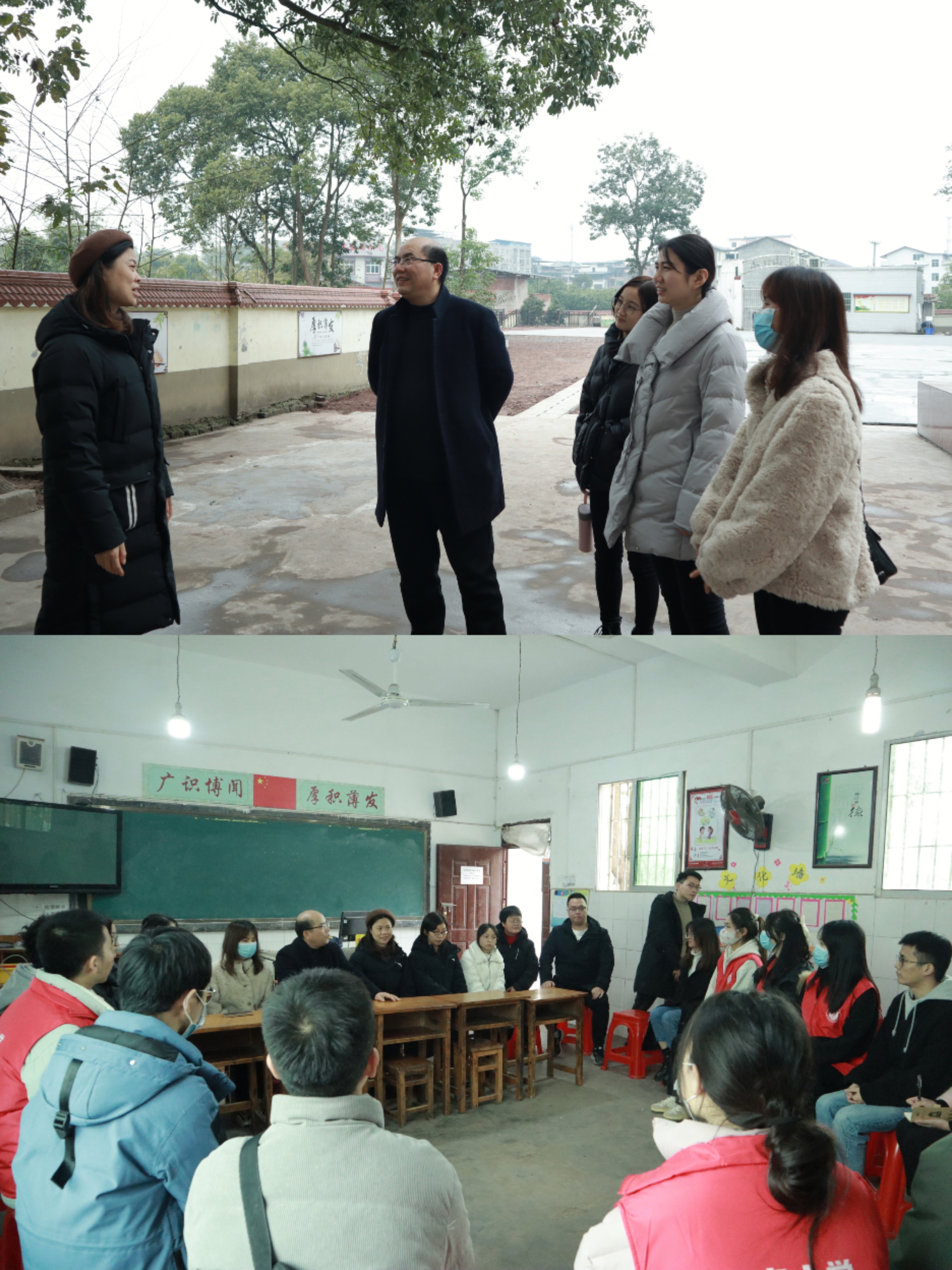 党委副书记、纪委书记黄庆洲、团委书记刘晓兰、研究生辅导员李林园、吴秋云带领由14名研究生组成的朱沱镇五龙山村小志愿服务队抵达重庆市永川区朱沱镇五龙山村小。