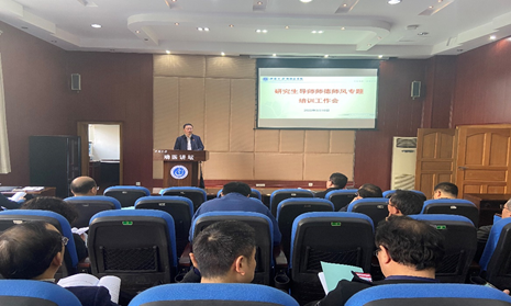 黄昌建书记首先对全体导师做了师德师风的专题培训,用鲜活的案例对全体导师做出警示教育,遵循良好师德师风是教书育人、实践育人的基本准则和底线。方仁东副院长领学了学校研究生培养与管理的系列新文件,对HO5HO