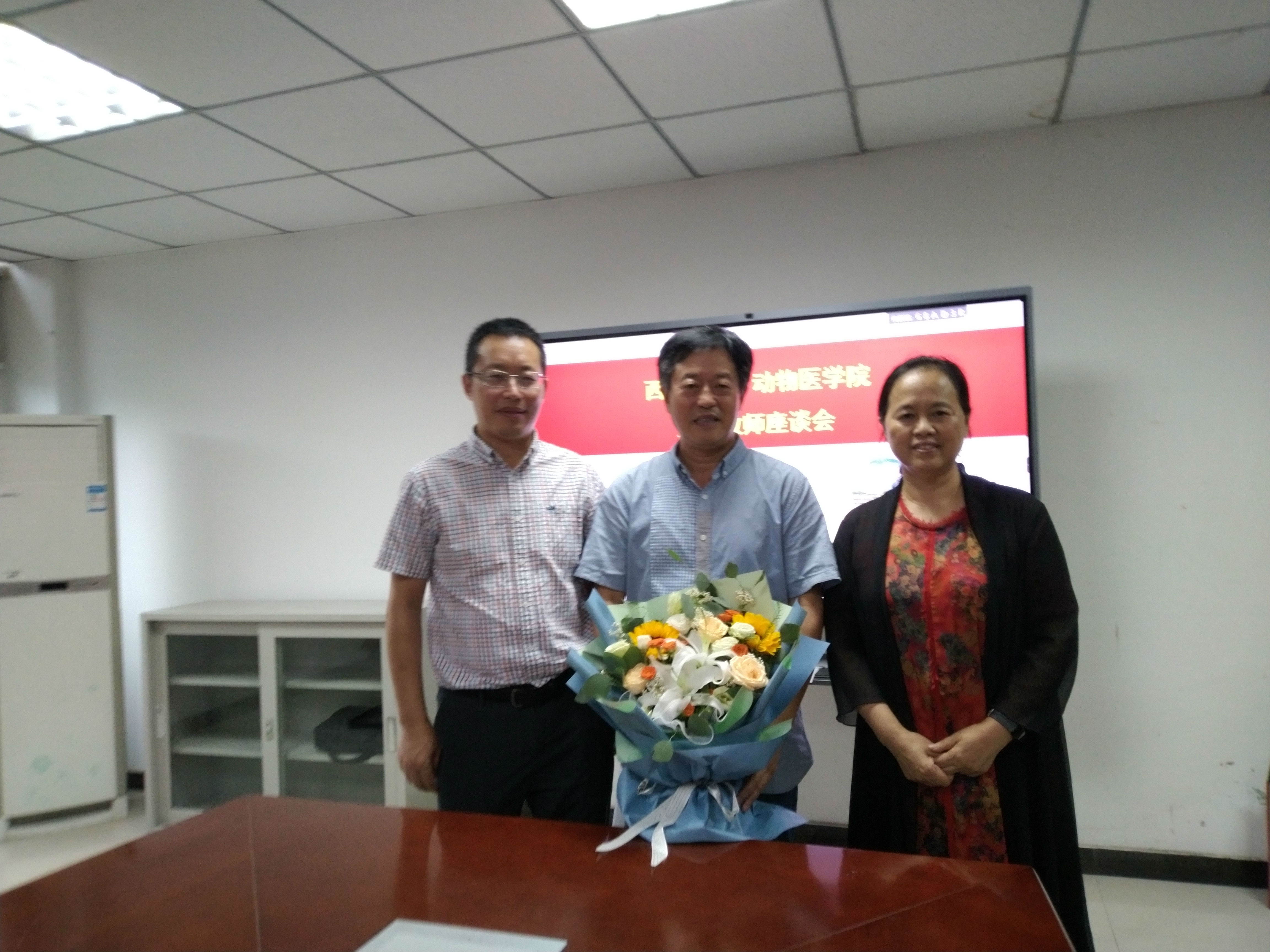 座谈会由院长刘娟主持。首先,王豪举老师对自己40多年在教学、管理等方面进行发言:(1)作为一名教师以及在担任原动物科技学院党委书记和HO5HO