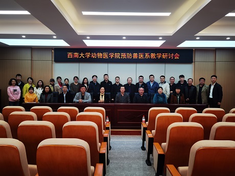 第三届“教研活动周”方案及开展教研活动的意义;刘娟院长就如何坚持“以本为本”,办好一流本科教育进行发言,提到本科教育重点在教学,呼吁站讲台的老师们要多读书,读好书,才能影响到学生们读好书,加强理论知识和技能的传授,培养“懂知识,有能力,能动手,能解决问题,让企业及社会认可“的学生;宋振辉副院长就本科课程建设的意义及当前我们课程建设中存在的问题进行了深入剖析;方仁东副院长也就科学研究在本科教学中的作用进行了阐释,退休老教师王豪举老师分享了其几十年的教学经验,指出实践对教学的重要性,希望青年教师能走到生产中去。随后,胡世君、李继祥、高继业等各位教师踊跃发言,对教学过程存在的问题进行了热烈讨论,国家动物医学类教指委员彭远义老师也从专业认证要求方面讲到课程体系建设要按照一流课程来设定,注重课程间的区分度,要加强老师与生产的紧密结合,同时加强科学研究并以此促进本科教学;校友罗仕伟兽医站站长代表基层对养殖技术需求进行了发言,基层需要接地气的专业技术,才能实际解决生产中的问题,希望老师们能在这方面进行相关探讨研究。最后,黄昌建书记进行了总结发言,提出教师要做好科学研究、社会服务与教学的紧密结合,做好课程建设紧密结合思政元素,以培养高能力、高素质学生为最终目标,鼓励老师多元化发展,突出自身优势,为更好的教书育人服务。