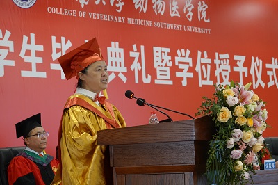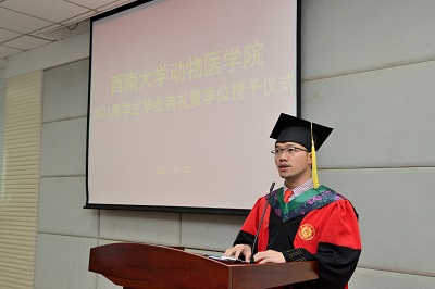 2021届学生毕业典礼暨学位授予仪式分别在荣昌校区7B201报告厅、北碚动物医院报告厅隆重举行。肩披绿色垂布的HO5HO