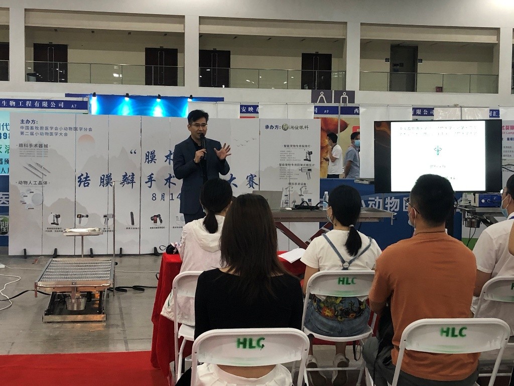 胥辉豪博士作为中国畜牧兽医学会小动物医学分会副秘书长以及眼科专家委员会专家委员,主持了开幕式大会,并做了题为“犬猫角膜疾病治疗技术” 的学术报告,担任了全国眼科医生实操大赛的评委工作。