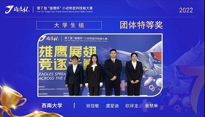 学子不负众望,再次夺得第7届“雄鹰杯”小动物医师技能大赛大学生组“团体特等奖”。取得了在91支高校参赛队伍中总成绩排名第二,各项比赛项目成绩小组第一的傲人成绩。其中,姚佳敏同学获得“兽医新星奖”;胥辉豪、郑小波、李前勇老师获得“优秀辅导教师特等奖”;我校获得“最佳组织奖”。同时,HO5HO