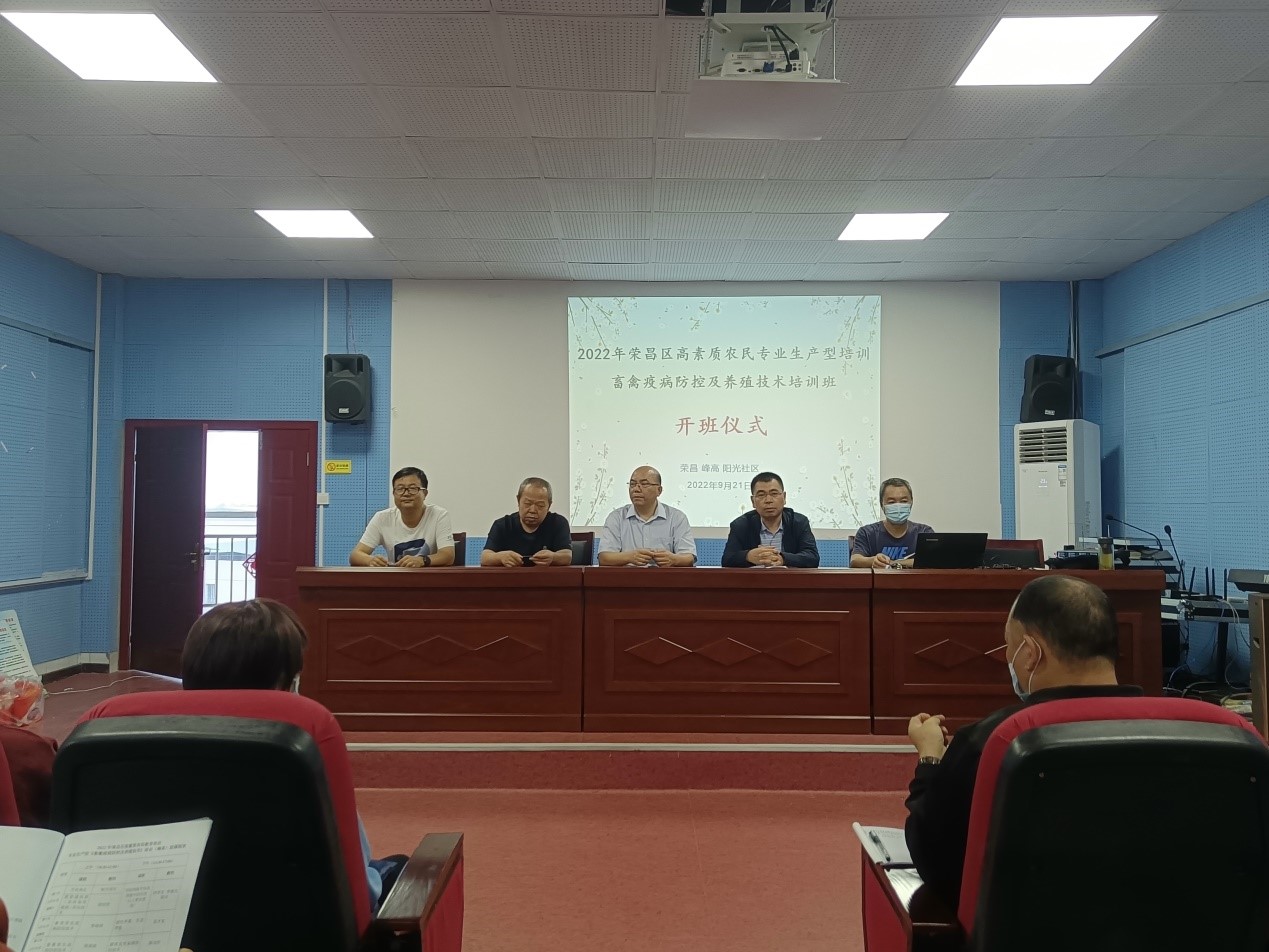 承办的2022年荣昌区高素质农民专业生产型培训暨畜禽疫病防控及养殖技术培训班在峰高街道阳光社区开班。荣昌区农委畜牧发展中心陈文远、HO5HO