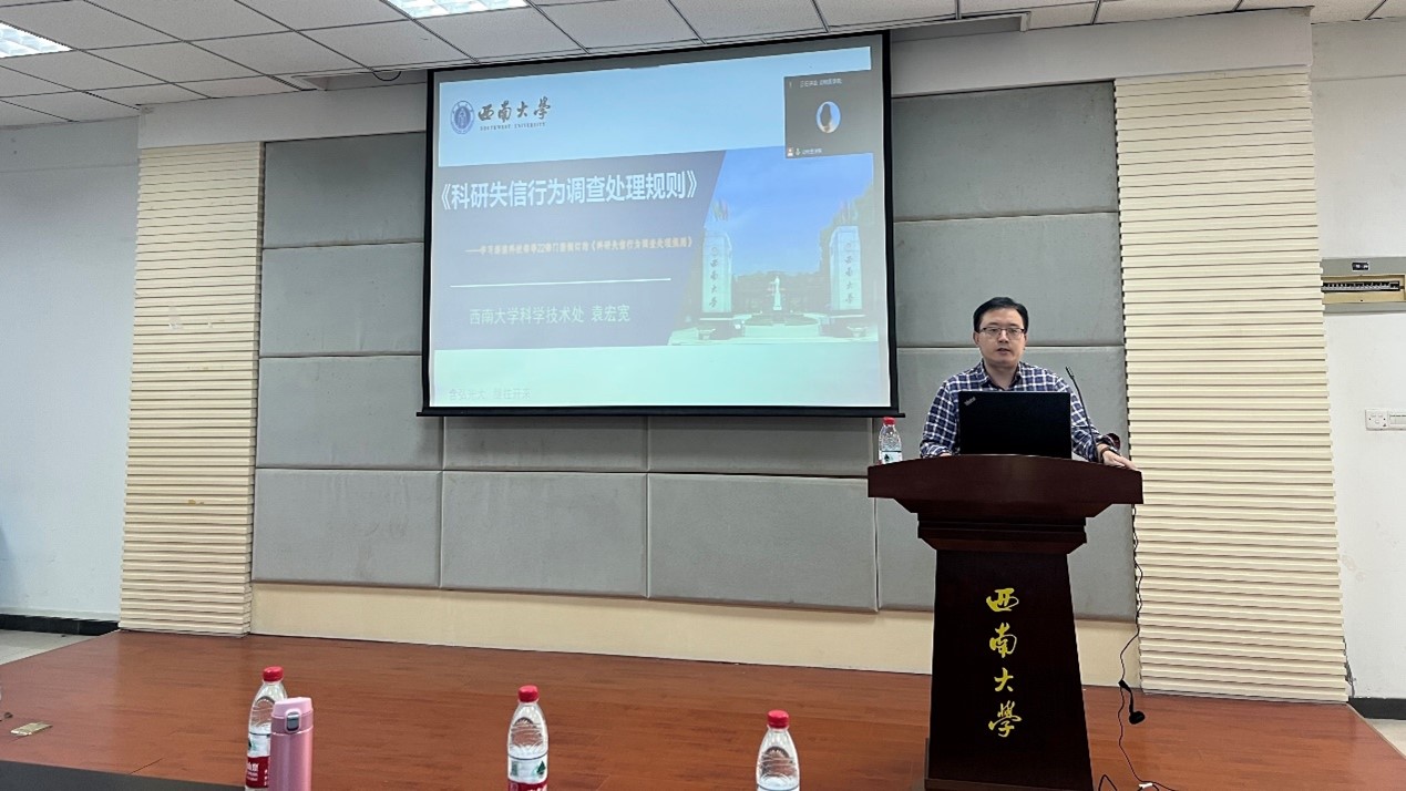 袁宏宽副处长详细解读了科技部等二十二部门制订的《科研失信行为调查处理规则》,阐述了各类科研失信行为的认定及处理,并结合侵占他人项目申请书、编造研究过程、提供虚假信息等具体案例,对科研失信行为做了深入剖析。方仁东院长对袁宏宽副处长莅临学院开展培训表示衷心感谢,希望全体师生坚守学术诚信底线,规范科研活动,共建良好学风,推动学院科研事业健康发展。学院未能参加培训的部分教职工、研究生需按学院要求自学《HO5HO