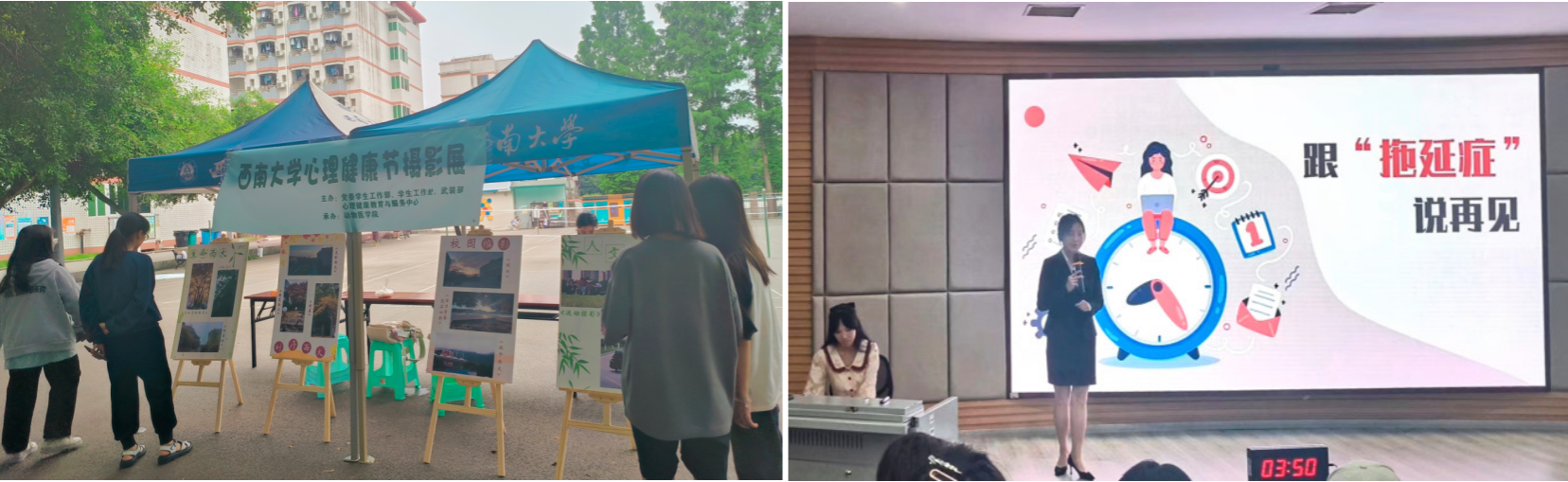 第十八届心理健康节之“定格西大景,镜见心灵港”主题摄影比赛,共有30余个学院、700多组学生参与。同时,学院围绕“525大学生心理健康节”这一主题精心筹划、组织开展了心理成长小报评比、心理微课比赛、心理摄影评比、心理知识推文等四项大学生心理健康活动。活动覆盖面广,同学们参与性强,贯通年级、班级和宿舍各维度,仅比赛项目就有近500名同学参与其中。