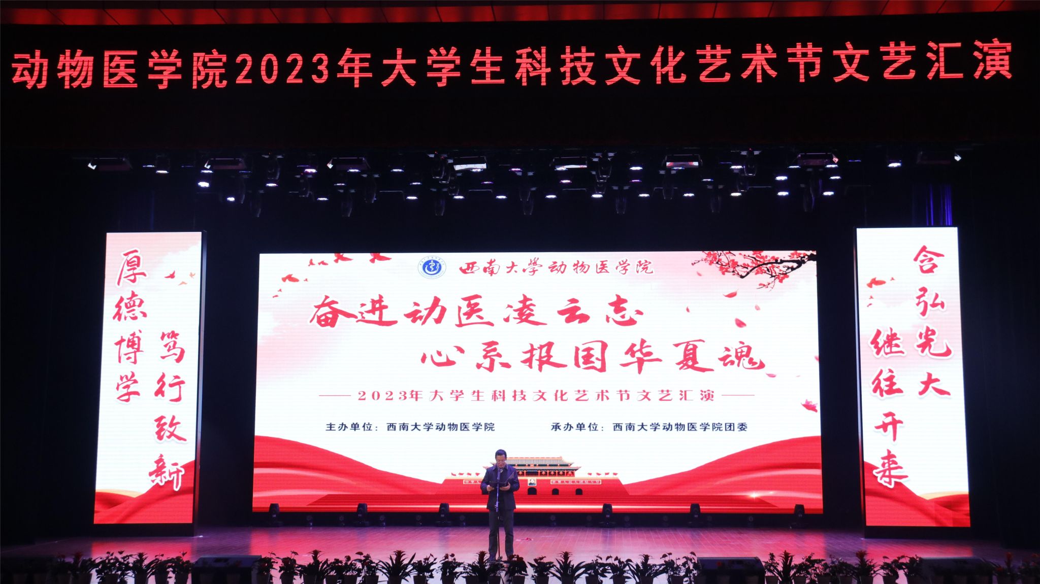 “奋进动医凌云志,心系报国华夏魂”大学生科技文化艺术节文艺汇演在荣昌校区新活动中心举行。荣昌校区党工委、管委会及职能部门领导,在荣各学院领导以及HO5HO