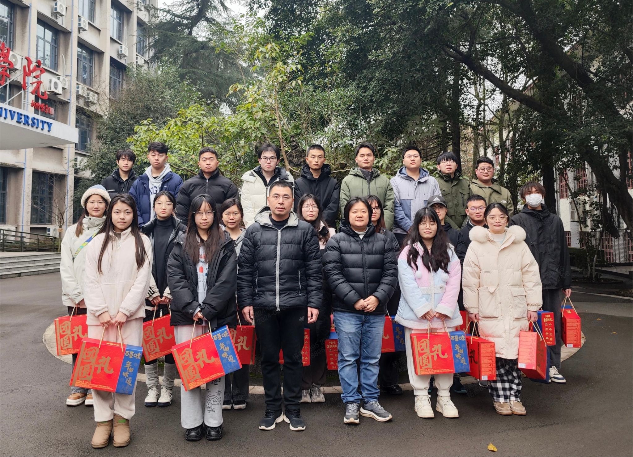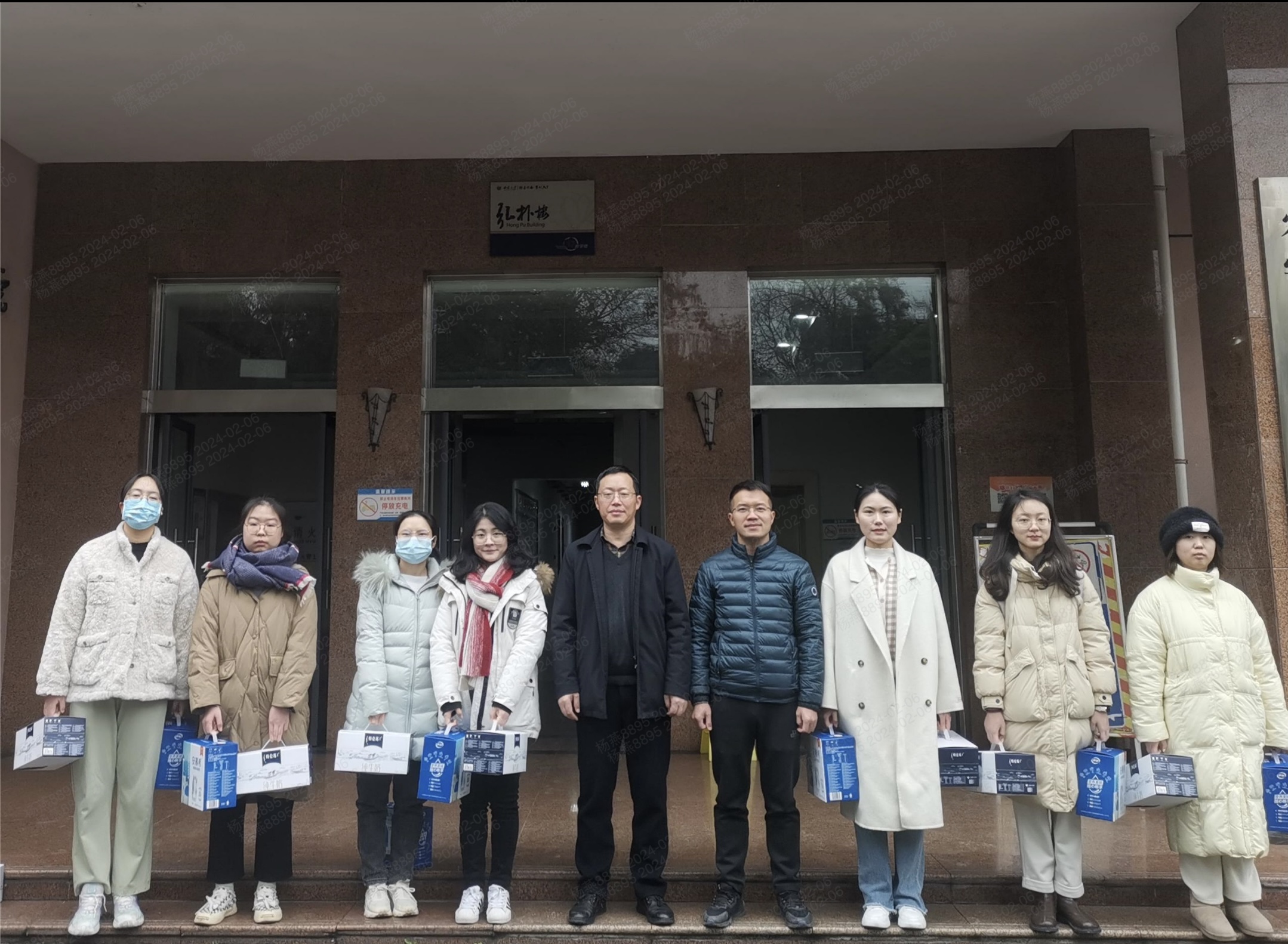 在荣昌校区,罗丹、宋振辉带着慰问品,为29名留校研究生、本科生送去新春问候和祝福,详细了解同学们留校原因及身体状况,勉励同学们多和家人联系,注意寝室用水用电、实验室、交通等各方面的安全,谨防电信诈骗,在校度过一个欢乐祥和、健康充实的假期。