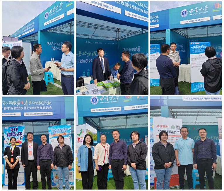 双选会现场,方仁东院长和罗丹副书记先后双胞胎集团、牧原集团、重庆大北农饲料科技有限责任公司、北京英惠尔生物技术有限公司、四川德康农牧食品集团股份有限公司和南昌正大畜禽有限公司等企业招聘负责人亲切交谈,详细了解人才需求情况,并希望用人单位与学院建立长期紧密的合作关系,共建平台,共谋发展。