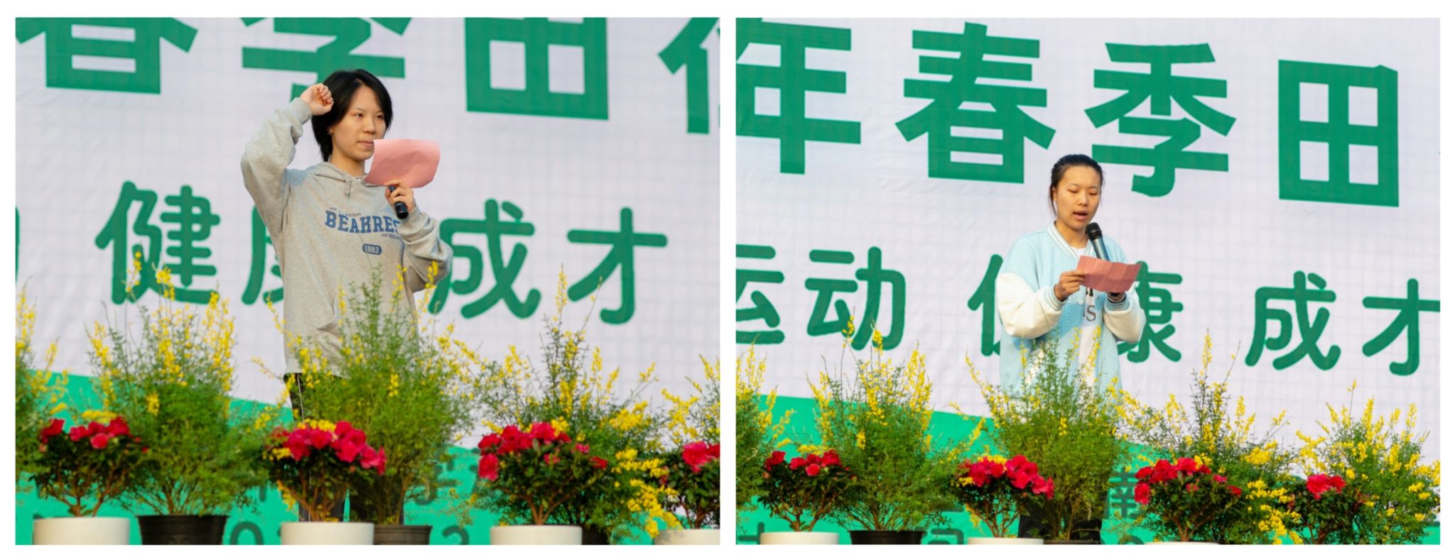 宋振辉在致词中说,学院积极践行“三全育人,五育并举”的育人理念,高度重视体育教学,举办本次运动会旨在让同学们拥有一个发扬拼搏精神,展示自我精神面貌、身体素质以及运动精神实力,发挥个性特长的舞台。希望全体运动员、工作人员发扬“团结、拼搏、奋进”精神,赛出风格、赛出精彩、赛出水平。