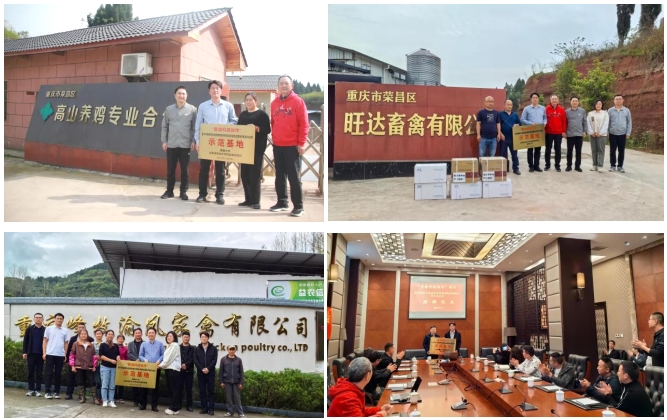 陈红伟副教授同山东省农业科学院兽药创新团队负责人林树乾主任将“鲁渝科技协作示范基地”牌匾分别发放到了重庆市荣昌区高山养鸡专业合作社、荣昌区旺达畜禽养殖有限公司、重庆峰牧渝凤家禽有限公司和石柱坚迈农业开发有限公司,标志着鲁渝科技协作推动的《抗畜禽重大疫病的新兽药创制关键技术研究与应用》、《基于中兽医理论的家禽绿色中药饲料添加剂应用技术集成与应用》项目在重庆地区试验成功,为我市畜禽产业绿色发展注入了强大动力。
