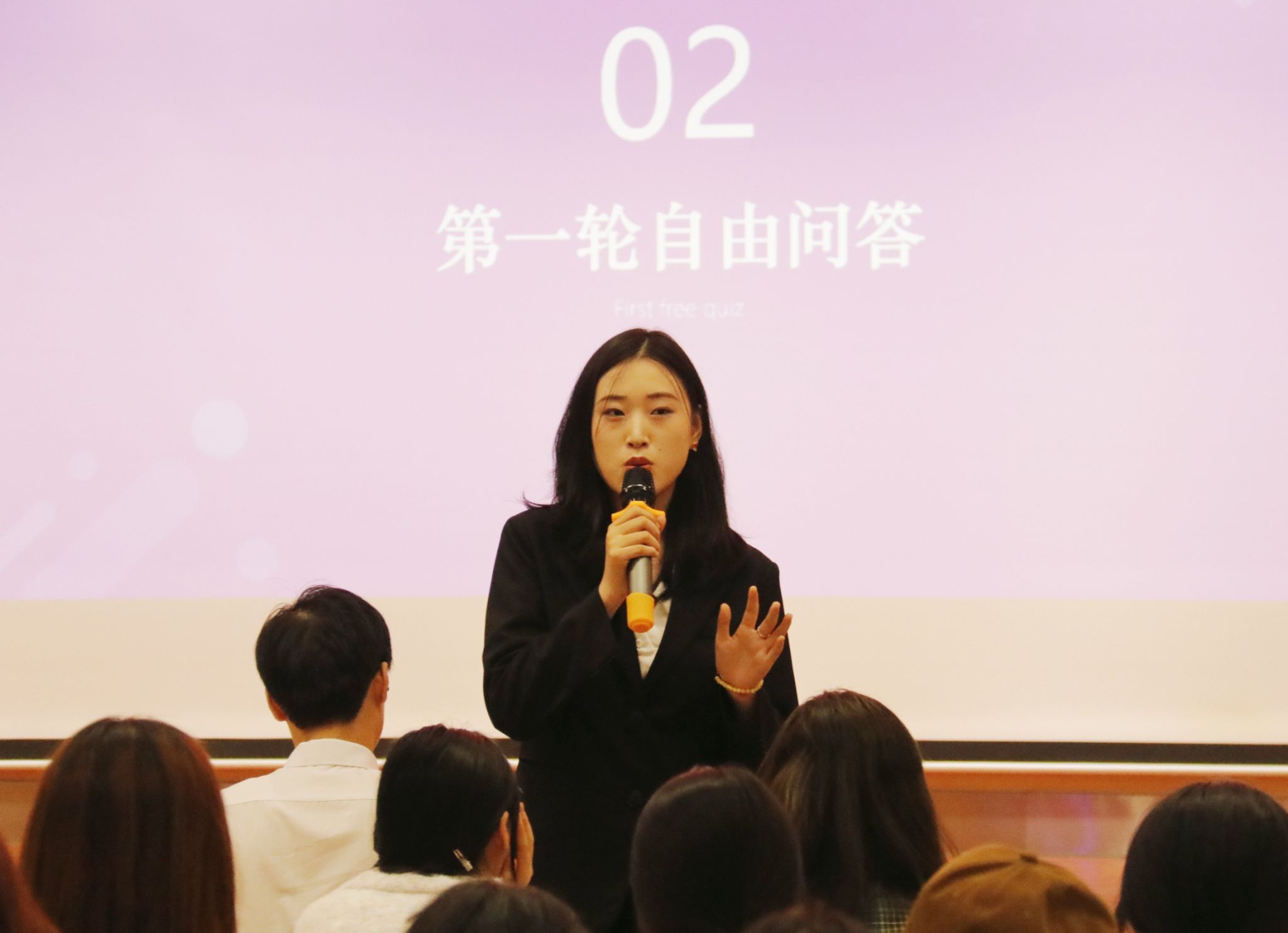 在学长学姐分享结束后的自由问答环节中,同学们展现出极高的热情,“怎样保研”、“辅修需要付出什么”、“怎样更好学习专业知识”等问题,无一不展现出同学们积极向上、虚心学习的态度,表现出他们对学习的热情、大学生活的期待、人生目标的坚定等。