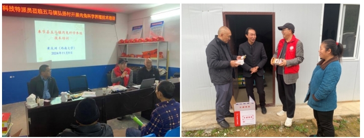 在奉节县五马镇弘扬村肉兔养殖专业合作社,科技特派员黄庆洲给养殖户做“肉兔养殖关键技术”讲座,并到养殖场做技术指导;在巫山县明月天兆科技有限公司,帅学宏博士与向明董事长就饲料禁抗条件下猪病防治关键技术,特别是猪“三联”疫苗科学免疫程序做了深入交流;在巫山县远清畜禽养殖有限公司种羊场,陈吉轩教授与向远清场长就种羊“三联四防”疫苗的科学免疫、寄生虫病及季节性常发病防控关键技术做了详细讲解;在巫山县天红畜禽养殖专业合作社蛋鸡场,焦寒伟博士就饲料禁抗与蛋鸡的生态养殖关键技术,特别是蛋鸡球虫病防治进行了技术指导。