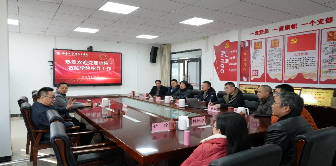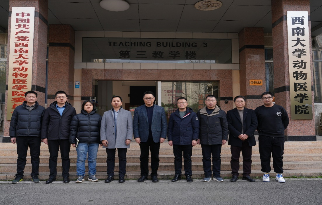 沈建忠教授,重庆畜牧科学院副院长黄思扬教授一行来访学院。沈建忠院士一行参观了学院国家级实验教学示范中心标本馆和部分实验室,并与学院领导班子和教师代表座谈交流。学院院长方仁东,党委副书记、纪委书记罗丹,副院长宋振辉、副院长陶晓奇及部分教师代表陪同参观并出席座谈交流会。