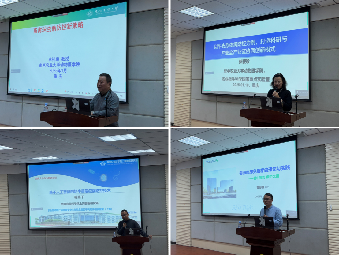 方仁东在开幕式中对各位专家的到来表示热烈欢迎和诚挚感谢,希望通过此次论坛加强与兄弟高校、研究所和企业之间的学术交流与互动,为进一步合作奠定基础。论坛期间,李祥瑞围绕“畜禽球虫病防控新策略”这个主题,分享畜禽球虫病的发病机制和最新防控策略。郭爱珍以“牛支原体肺炎防控技术研究”为题,分享了十几年来在牛支原体肺炎研究方面的成果。韩先干以“基于人工智能的奶牛重要疫病防控技术”为题,讲述了人工智能在奶牛生产和健康管理方面的应用。曾容愚以“兽医临床免疫学的理论与实践——管中窥豹 疫中之苗”为题,讲述了兽医临床免疫学的基本概况以及疫苗研发过程中的难点,深入浅出地分享了兽医临床一线中的问题和解决方案。