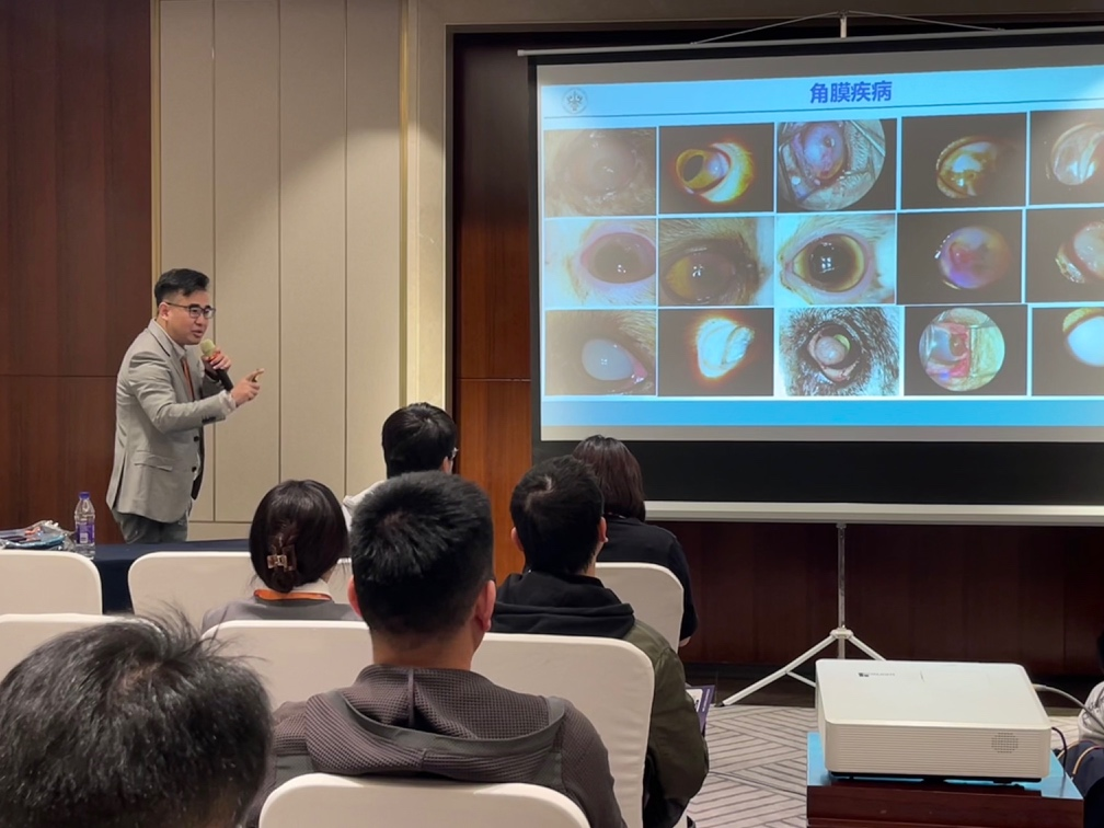 胥辉豪副教授,作为大会副秘书长在此次大会中围绕“犬猫角膜手术成功要点”与“犬猫葡萄膜炎诊治要点”两个主题进行了专题讲座,并同时对“角膜急症处理原则”的显微手术实操进行了讲解与培训,为广大临床医生提供了宝贵的临床知识与经验。同时,胥辉豪作为学院教学动物医院院长(荣昌),带领相关骨干临床老师与研究生积极参与本次大会,为进一步提升HO5HO