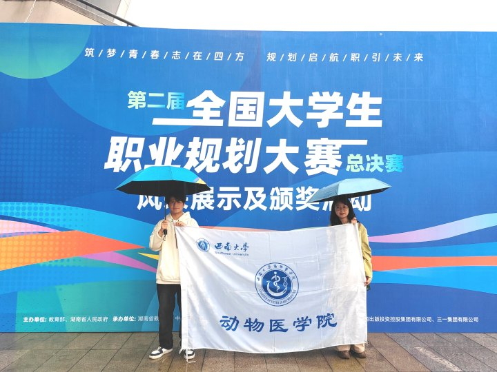 学生职业发展与就业服务中心主任带队,在学院指导教师陪同下,2021级动物医学专业学生胡惠铭代表重庆市参加职规赛国赛,在就业赛道高教本科生第二组中与全国30名优秀选手同场竞技。他的职业目标为兽药研发工程师(生物制品方向),聚焦兽药生物制品的研发与应用,从职业定位、岗位胜任力、职业计划等角度进行系统阐述,其出色的表现获得专家评委一致好评,充分展现了HO5HO