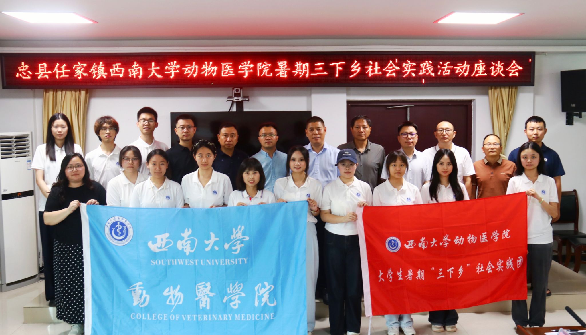 院长方仁东教授带领学院教师及“宠爱有家,医路同行”社会实践团,走进重庆市忠县任家镇,正式启动大学生暑期“三下乡”社会实践活动。任家镇党委书记李富华、镇长王海洋、党委副书记杨勇等镇领导全程参与。校地双方携手,旨在以动物医学专业力量赋能当地乡村全面振兴。