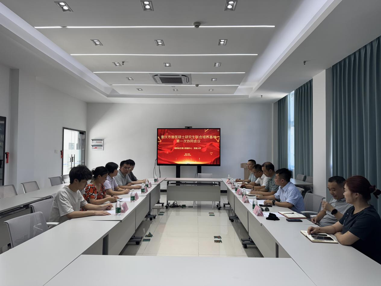 与国家级生猪大数据中心于云尚·农牧大数据产业园开展重庆市兽医硕士研究生联合培养基地第一次协同会议暨揭牌仪式。学院党委副书记、纪委书记罗丹、副院长宋振辉及该基地建设负责人甘玲教授、生猪大数据中心主任秦友平、生猪大数据中心副主任陈虎、生猪大数据中心综合科科长赵平等出席此次会议。