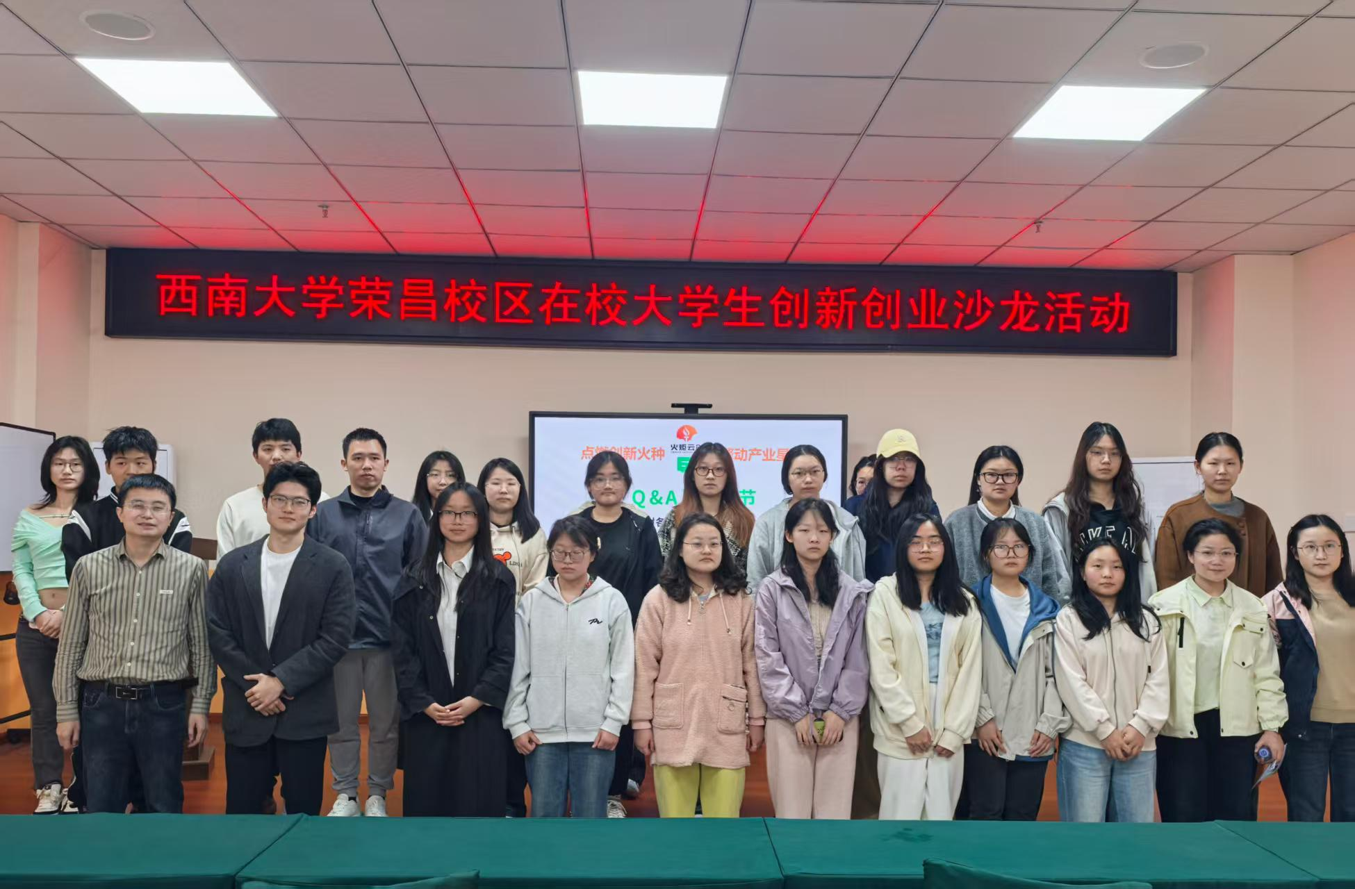 本次培训特邀火炬云创创始人龙水维担任主讲导师,荣昌区大学生就业创业公共服务中心负责人许淋钧应邀到场,为参训学生提供政策解读与现场答疑。HO5HO