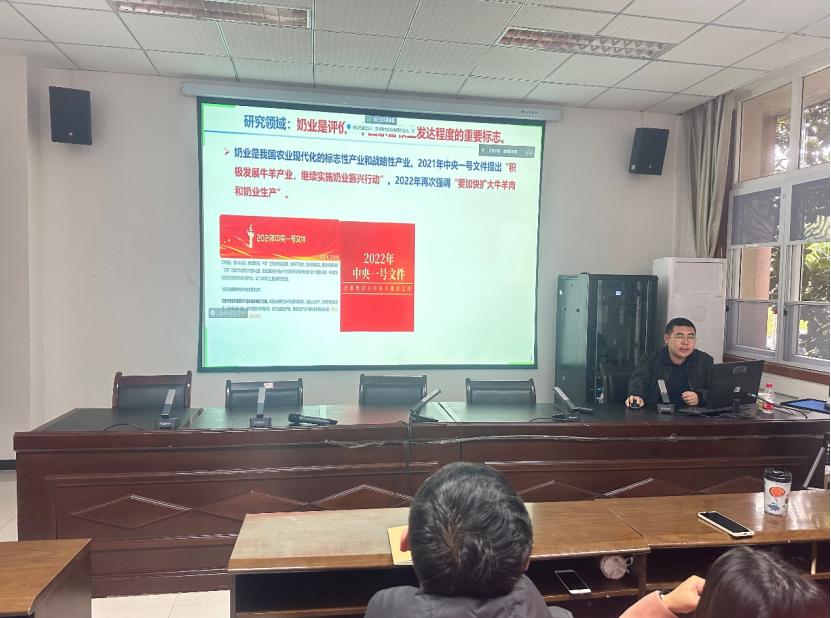 付云贺教授以“奶牛‘瘤胃源性乳腺炎’的病因及机制探究”为题,分享了精彩的报告。奶业是我国农业现代化的标志性产业和战略性产业,乳腺炎是奶牛最常见的疾病。传统观念认为乳腺炎是有病原微生物通过乳头以外源性途径进入乳腺引起的乳腺局部炎症。付云贺教授独辟蹊径地探讨了引起乳腺炎的内源性途径,提出肠/瘤胃源性乳腺炎的病理概念,并从肠道细菌迁移、肠道代谢物迁移、肠道免疫细胞迁移和神经体液调控四个方面阐明了“肠源性乳腺炎”发病机制,提出了新的防治奶牛乳腺炎发生的方法。报告后付云贺教授与师生进行了深入的互动交流,解答了大家关于学术研究的疑问,学术沙龙现场氛围热烈。付云贺教授报告深入浅出、逻辑严密,本次报告不仅拓宽了师生的学术视野,同时为我们提供了宝贵的学术资源和启发,增进了HO5HO