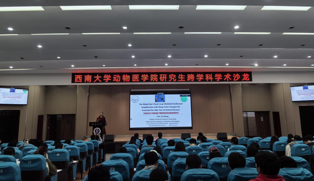 张杰以“The Naked-Eye Visual Loop-Mediated Isothermal Amplification with Sharp Color Changes for Potential Pen-Side Test of Animal Diseases”为题,就我国重要动物传染病、临床快检方法建立、产品合作研发及国际交流合作项目申报进行了深入交流,为在场师生提供了宝贵的学术洞见。HO5HO